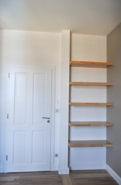 Le rangement est un aspect essentiel dans une maison. C'est pourquoi nous créons de petites étagères sur mesure qui s'insèrent dans de petits espaces. Elles permettent d'habiller un espace tout en restant utiles.